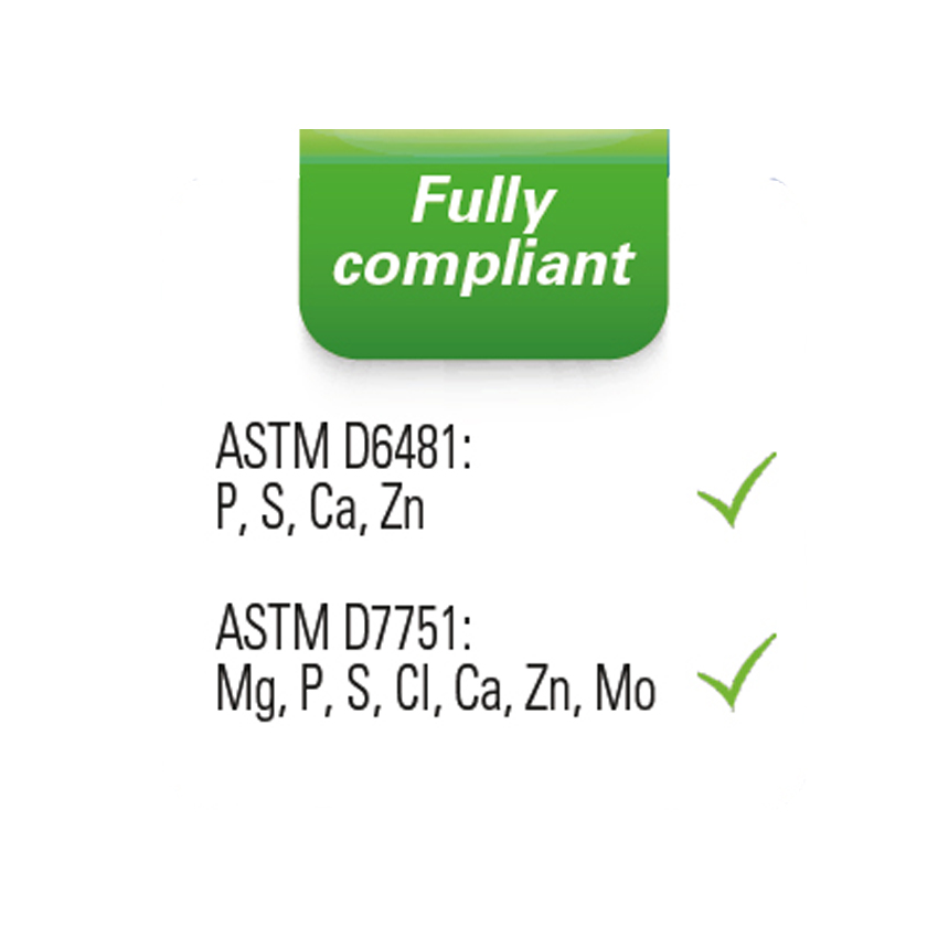 S2POLAR还完全适合根据ASTMD6481和ASTMD7751对润滑油添加物进行规范分析,其中包括Mg、P、S、Cl、Ca、Zn和Me等元素此外,还包括可食油或棕榈油元素分析